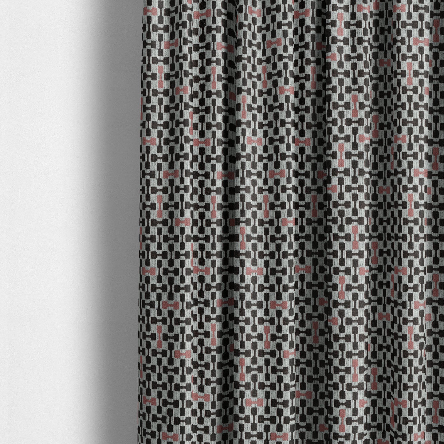 Create a custom and sophisticated look in your home with Fantasque's white, black, and pink coloured chenille fabric. The geometric pattern adds a modern touch, while the upholstery material ensures durability and comfort. Perfect for made-to-measure curtains, elevate your interior design with this versatile furnishing material.