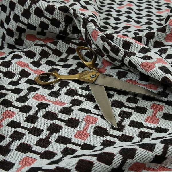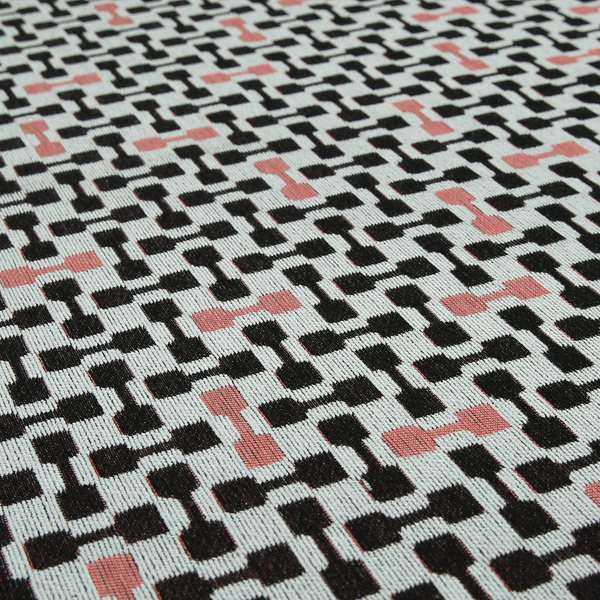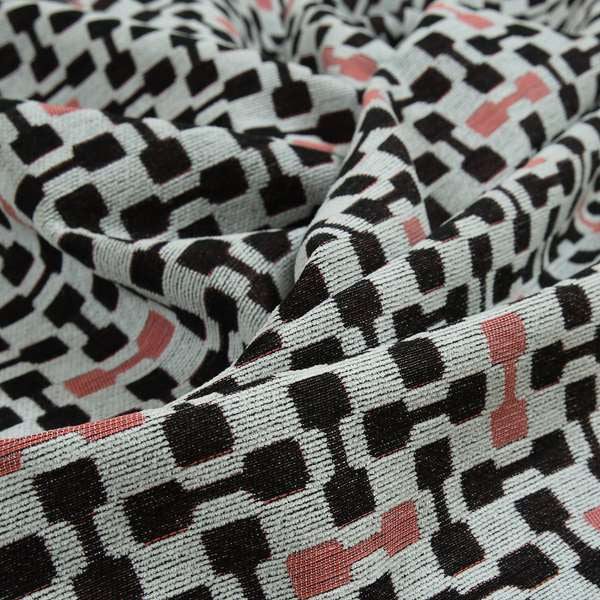 Upgrade your home decor with Fantasque's white, black, and pink geometric pattern chenille fabric. Designed for furniture upholstery and Roman blinds, this material adds a touch of modern elegance to any room. Made from high-quality chenille, it offers durability and softness for maximum comfort.