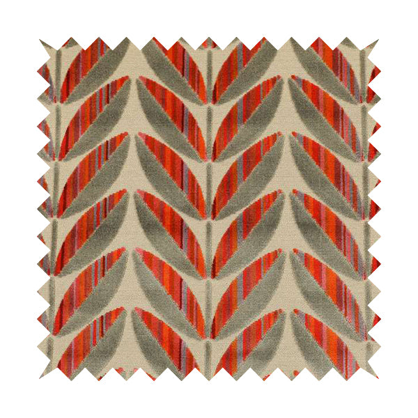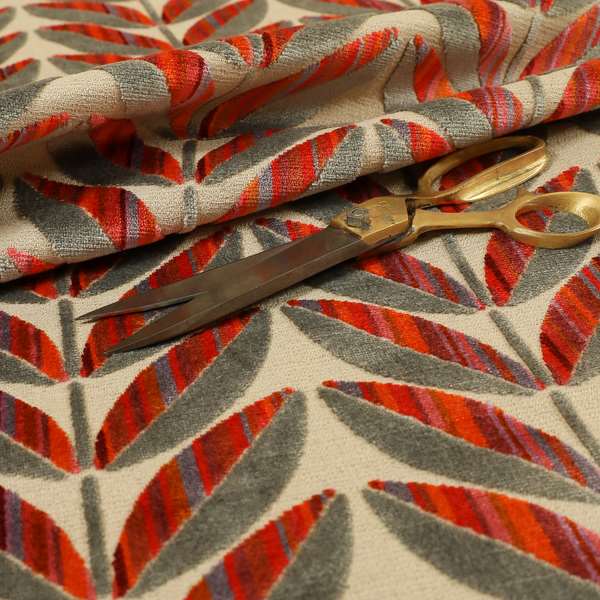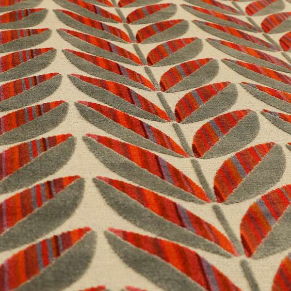 This luxurious velvet upholstery fabric features a stunning floral leaf pattern in striking shades of red, orange, and grey. Perfect for creating stylish and elegant Roman blinds that will add a touch of sophistication to any room. Upgrade your home decor with this premium fabric.