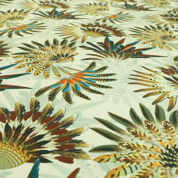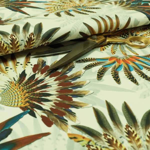 Elevate your home decor with our Freedom printed velvet fabric. This elegant blue and brown fabric features a Native Indian feather chief hat print, perfect for creating a statement in any room. Made for upholstery use, it also works beautifully as Roman blinds. Crafted with quality and style in mind, our fabric will bring a touch of culture and sophistication to your living space.