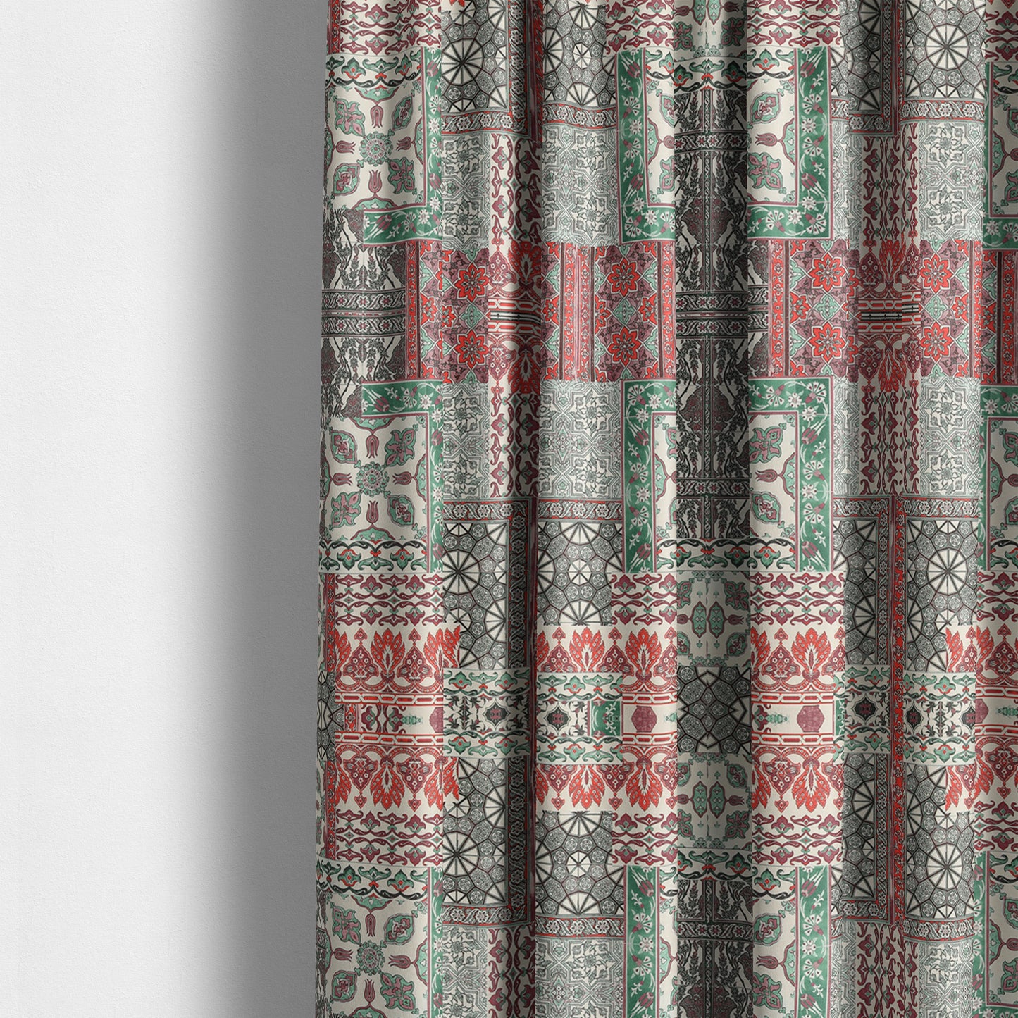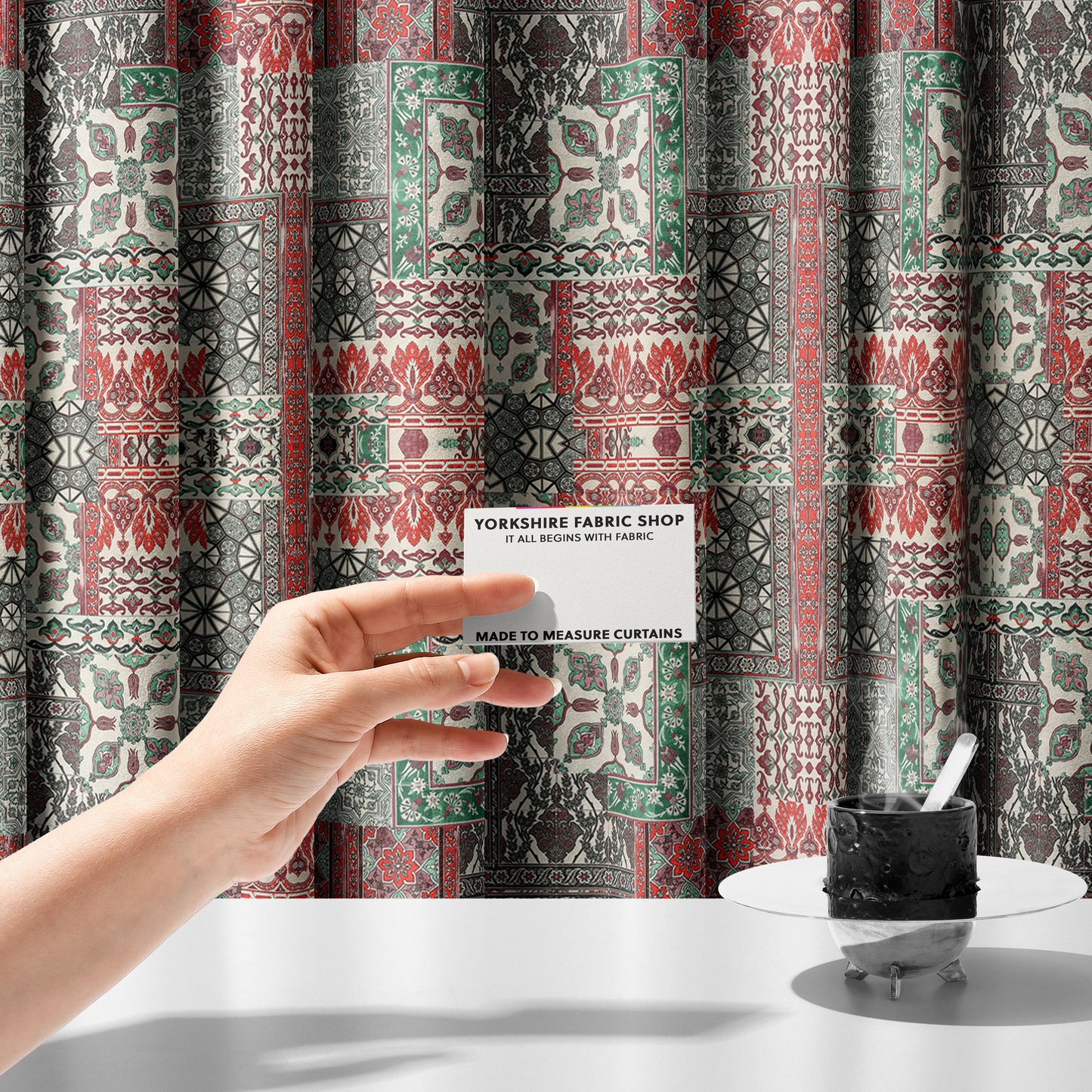 Elevate your home's decor with our Freedom printed velvet fabric collection curtains. The green, purple, and red patchwork pattern adds a touch of colour to any room. Made to measure, these curtains offer the perfect fit for a stylish, luxurious look. Experience the freedom of custom-made curtains today.