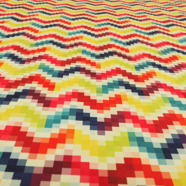 Experience the ultimate freedom of design with our rainbow geometric chevron patterned upholstery fabric. Made from luxurious printed velvet, this fabric collection is perfect for adding a touch of colour and texture to any space. Add a modern touch to your furniture with ctr-166.