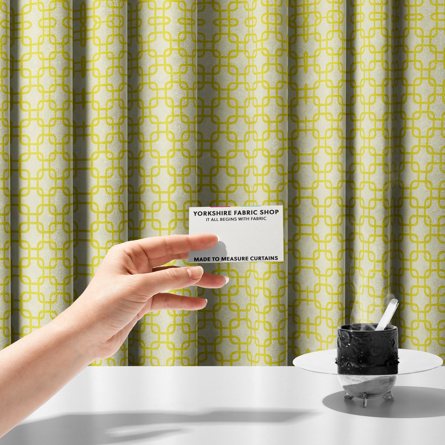 Introducing our Freedom printed velvet fabric collection, featuring a yellow maze geometric pattern. Made to measure curtains add a touch of elegance to any room. Enjoy the luxurious feel of high-quality velvet while adding a modern touch to your home decor. Transform your space with this unique and stylish fabric.