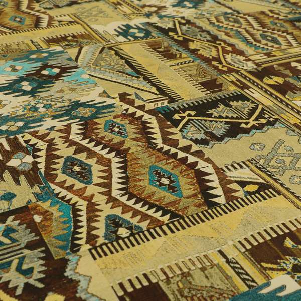 This printed velvet fabric features a unique tribal old Aztec theme with a patchwork pattern, perfect for upholstery and Roman blinds. Elevate your home decor with a touch of elegance and cultural influence. Durable and stylish, this fabric adds a touch of freedom to any room.