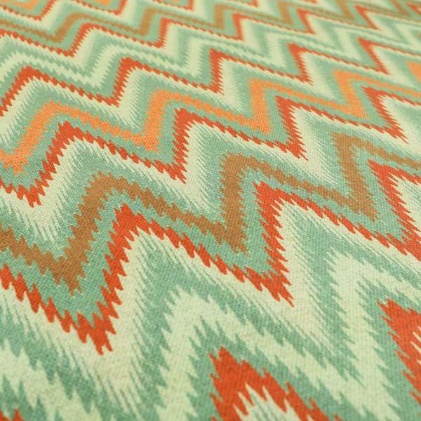 Elevate your home decor with this eye-catching Freedom printed velvet fabric. The unique zigg zagg stripe pattern in bold orange, red, and green hues adds a playful touch to any space. Perfect for upholstery projects, drapery, or Roman blinds, this fabric is sure to make a statement.