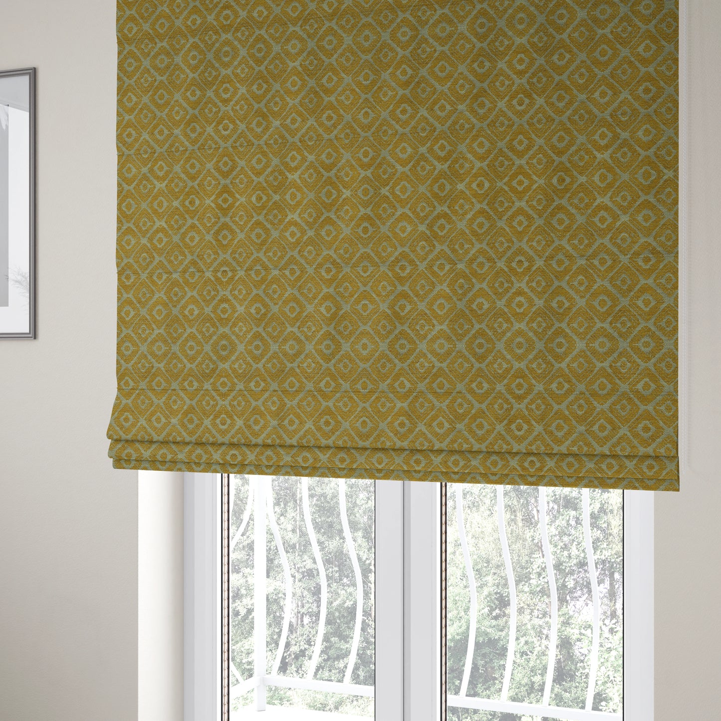 Enhance your home decor with our Geometric tribal theme pattern soft chenille upholstery fabric JO-1397. Crafted from premium quality chenille, this yellow-coloured fabric features a unique geometric tribal pattern that adds a modern touch to any room. Perfect for Roman blinds, this fabric offers both style and functionality.