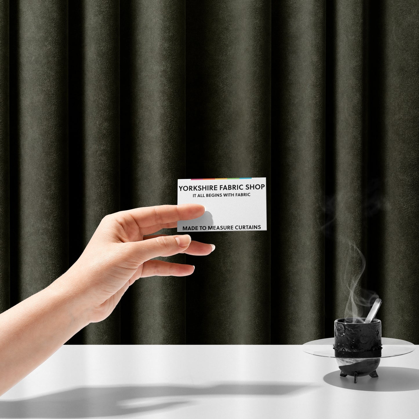 Introducing our luxurious Giovanni matt plain velvet upholstery fabric in a deep olive green colour. Crafted from premium material, this fabric adds a touch of elegance to your home decor. Made to measure curtains ensure a perfect fit for your windows. Upgrade your living space with this opulent fabric.