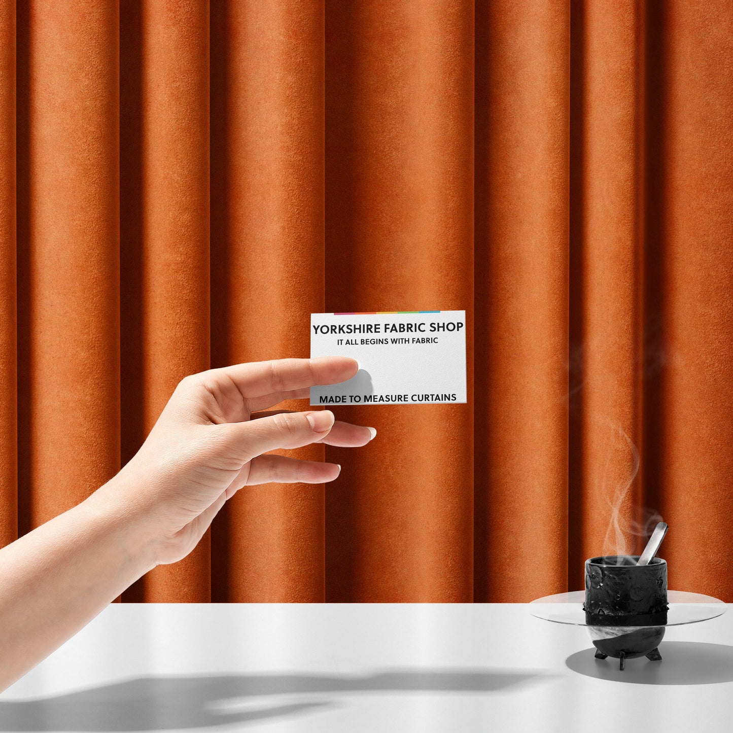 Elevate your home decor with our Giovanni matt plain velvet upholstery fabric in a fiery orange hue. Perfect for made-to-measure curtains, this fabric boasts a smooth and luxurious texture, adding elegance to any room. Transform your space with this high-quality, British-made fabric.