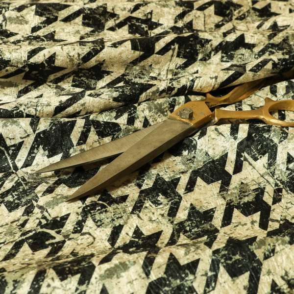 Expertly crafted and luxurious, our Glamour art collection print velvet upholstery fabric is the perfect addition to any room. With its stunning black and beige houndstooth geometric pattern, this fabric will elevate the look and feel of your home. Perfect for creating elegant Roman blinds.