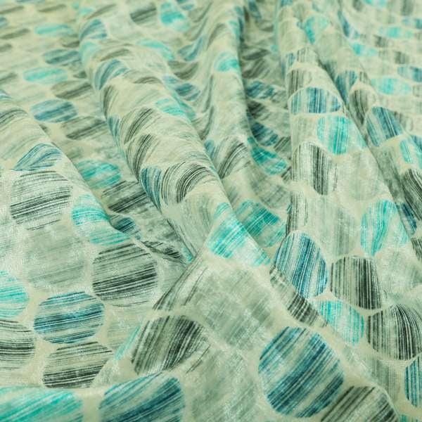 Transform your space with the Glamour geometric collection print velvet upholstery fabric. The modern round pattern in blue and grey adds a touch of elegance to any room. Made with high-quality velvet, this fabric is both luxurious and durable, making it perfect for creating stunning Roman blinds. Elevate your interior design with this sophisticated fabric.