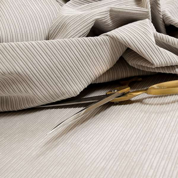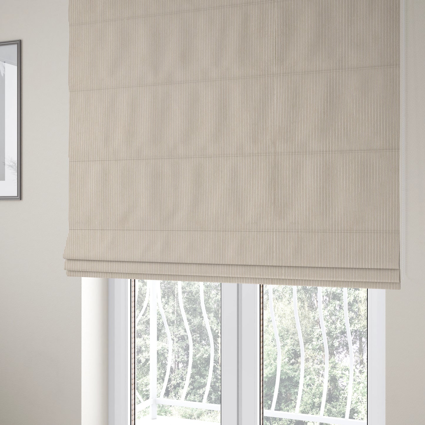 This Goole pencil thin striped corduroy upholstery fabric in silver colour is perfect for creating luxurious Roman blinds. With its sleek design and durable material, it adds a touch of sophistication to any window. Transform your living space with this high-quality fabric.