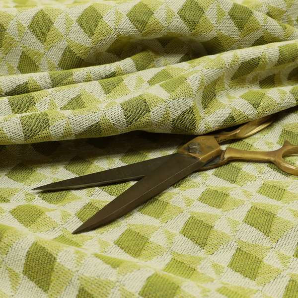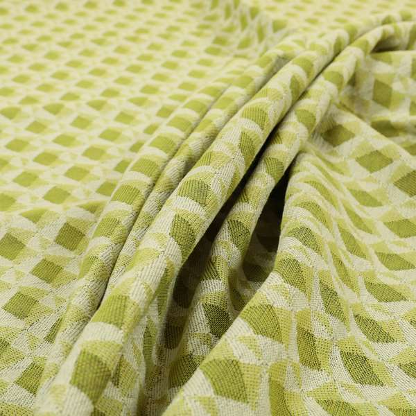 Transform your living space with our high-quality Green coloured chenille geometric pattern upholstery fabric. Expertly crafted with a modern geometric design, these Roman blinds are the perfect addition to any home decor. Made from soft and durable chenille, these blinds provide both style and functionality. Upgrade your interior with our versatile and elegant fabric.