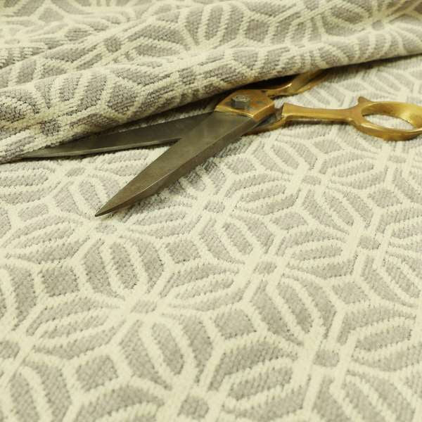 Expertly crafted, this chenille upholstery fabric features a small geometric medallion pattern in a blend of grey and cream. Its durable material makes it perfect for creating Roman blinds that will add a touch of elegance to any room. Transform your space with this versatile and stylish fabric.