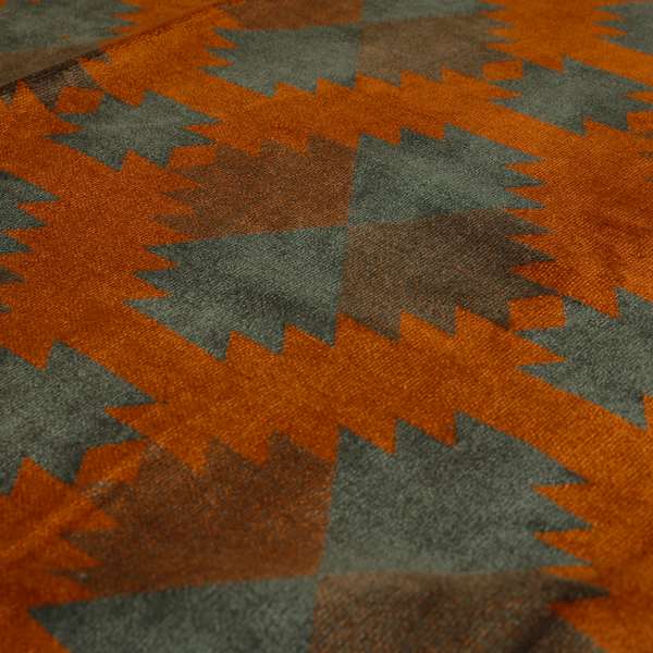 Expertly crafted and handwoven, our grey orange coloured velvet fabric features a bold kilim aztec pattern. Perfect for upholstery, this fabric adds a touch of texture and style to any space. Create unique and handmade cushions that make a statement.