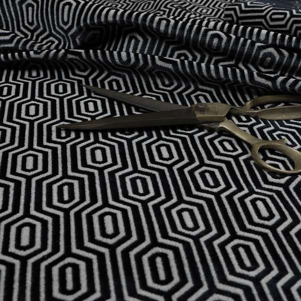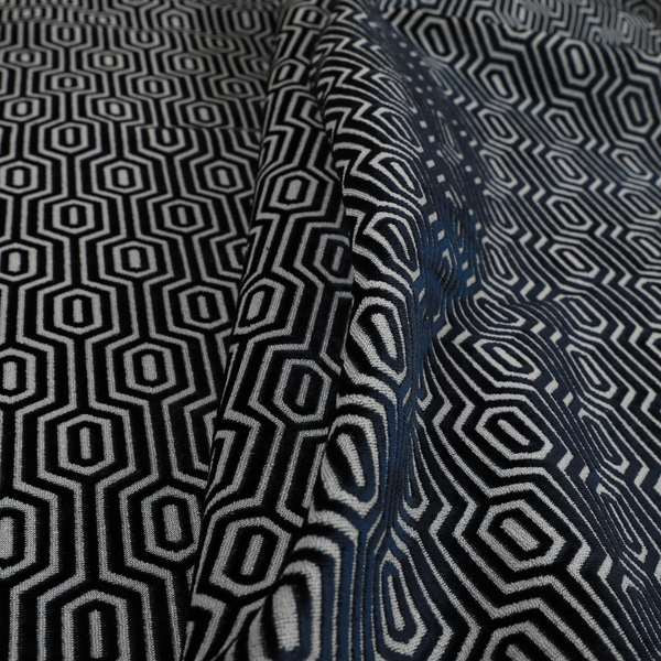 Enhance your space with the elegance of our Hakkaido geometric pattern velvet fabric in classic black. The soft and luxurious fabric adds a touch of sophistication to any room, while the unique geometric design adds a modern flair. Perfect for Roman blinds, creating a modern and stylish window treatment.