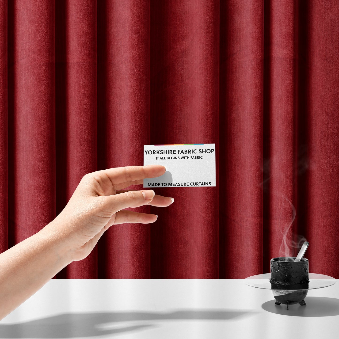 Introducing our Havant strie soft velvet textured feel chenille material in a bold red, perfect for luxurious and statement-making upholstery. Made to measure, our curtains offer a custom fit and effortless elegance to any room. Elevate your decor with the rich texture and quality of our fabric.
