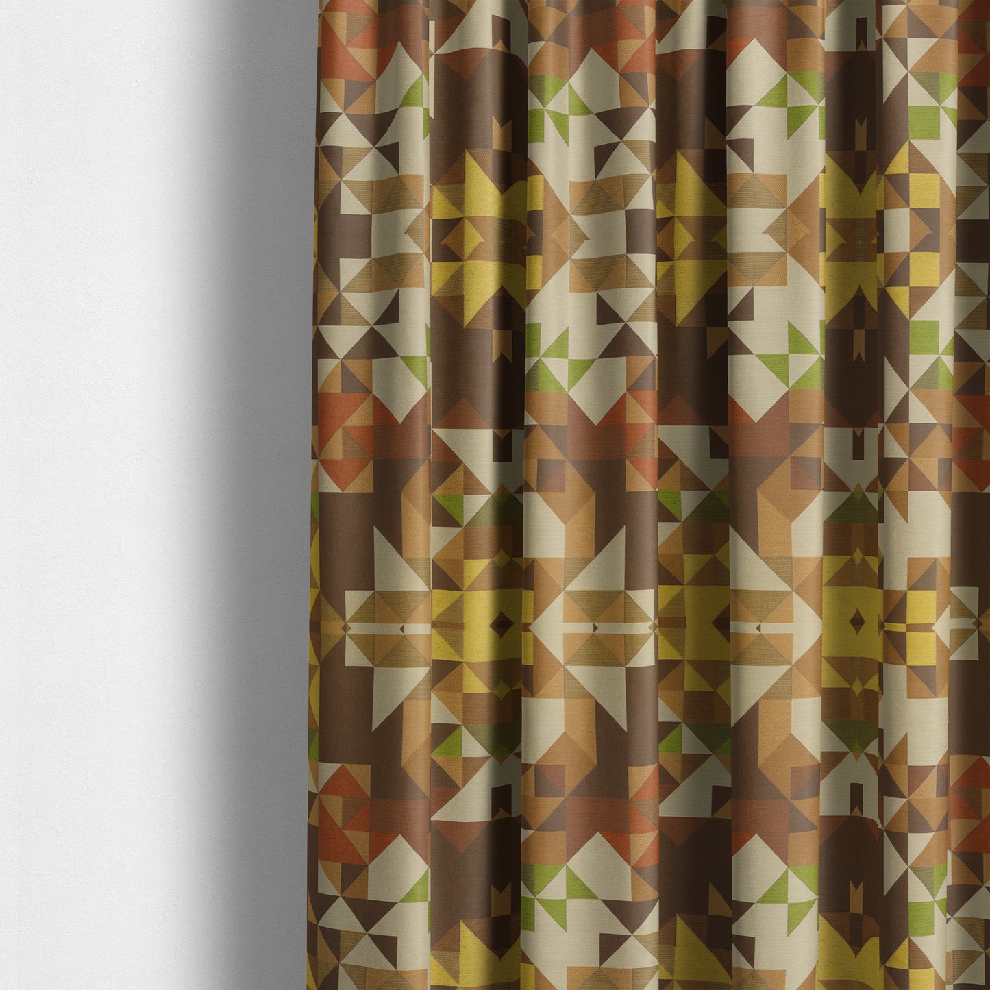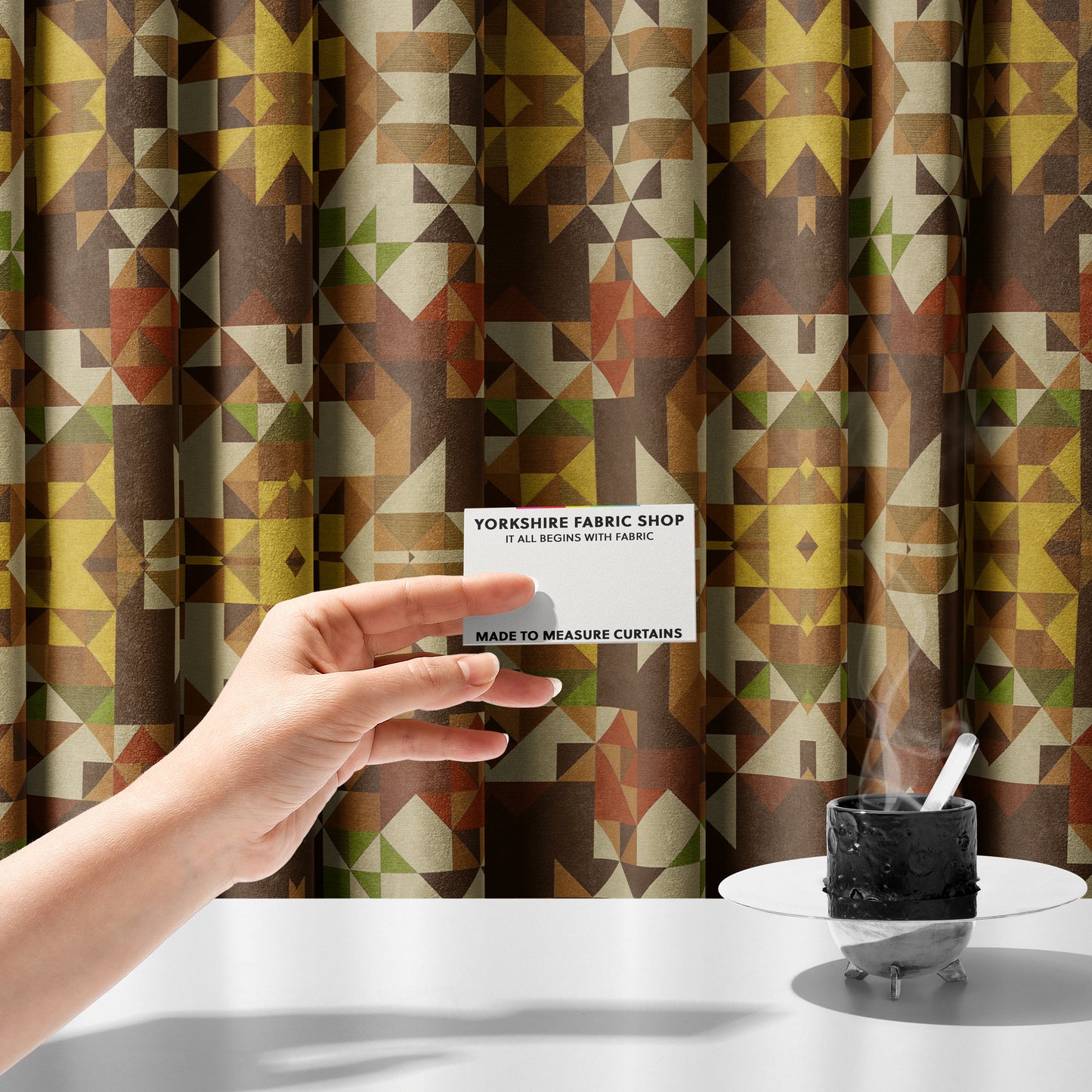 Upgrade your interior with our Hawaii modern geometric curtain. Made from high-quality upholstery fabrics, this curtain features a stunning brown, yellow, and green pattern. Elevate your space with its unique design and customize to fit perfectly with our made-to-measure option. Transform your home with style and functionality.