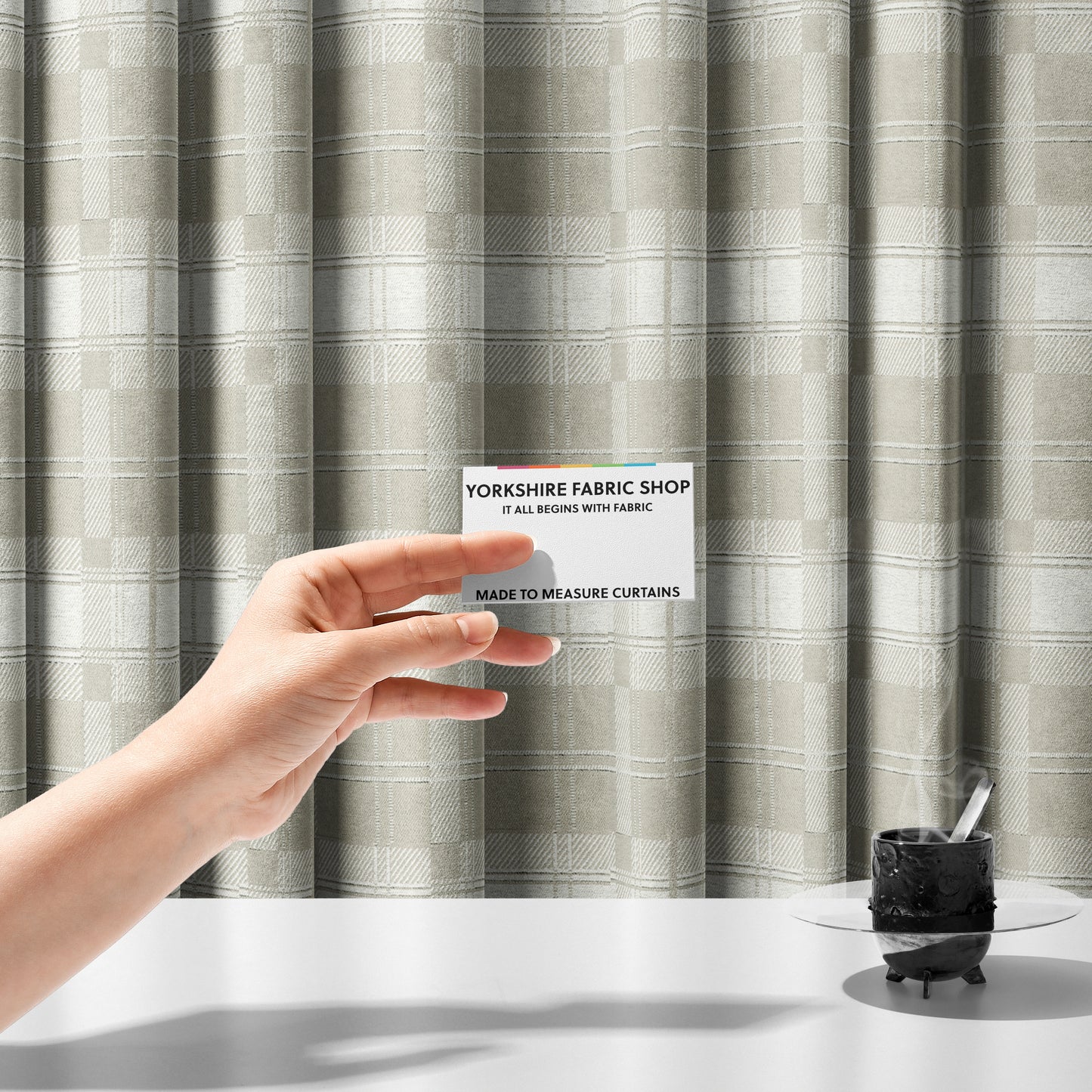 Enhance the elegance of your home decor with Highland collection's luxury chenille upholstery fabric. Featuring a soft, cotton-like texture and a stylish checked pattern in silver, this fabric is perfect for custom-made curtains. Elevate your space with this high-quality, made-to-measure option.