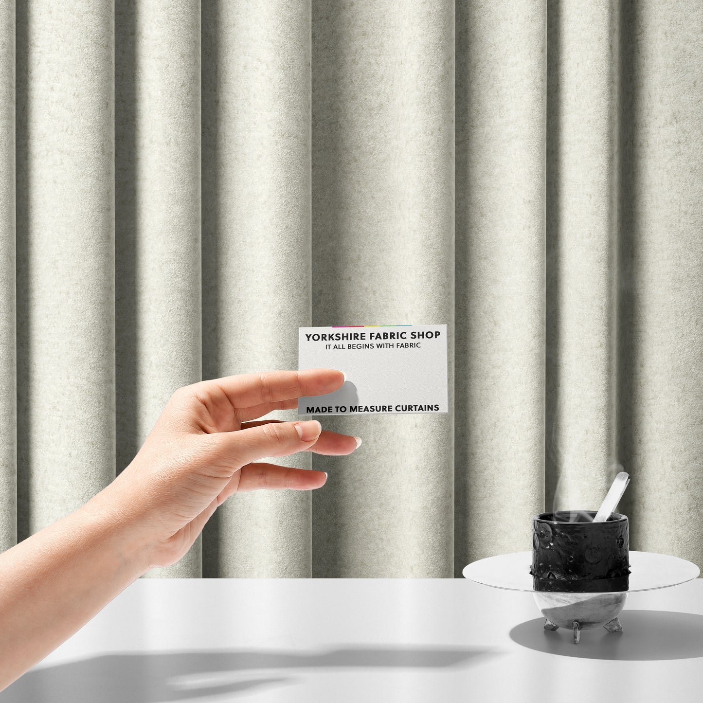 Made from recycled material, this white Hoover boucle upholstery fabric is the perfect sustainable choice for your home's made-to-measure curtains. Not only does it add a touch of modern elegance, but it also helps reduce your environmental impact. Let your curtains do more than just decorate your space.