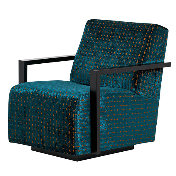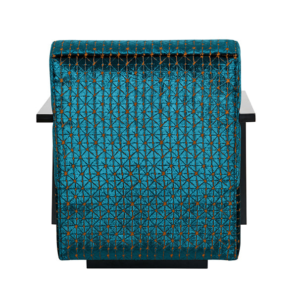 Hugo - Showcasing a dramatic fabric choice, cut out armrests and a unique wooden plinth base, this ultra comfy armchair is a fabulous fusion between vintage and modern styles. A luxury armchair that encapsulates a one of a kind charm, the sumptuous shape and strong boxy profile makes for a piece that you will adore season after season. Mixing functionality with dazzling design, this occasional armchair will become the focal point of any room whilst helping to curate a serene reading corner or divine area to sit of an evening! Upholstered in sumptuous teal and orange cut velvet mix, the ultimate fusion of glamour and practicality, this material showcases a dramatic depth of colour. This velvet armchair is a functional solution that doesn't leave style behind. Sumptuously soft, comfortable and luxurious, Hugo is an amazing all rounder.