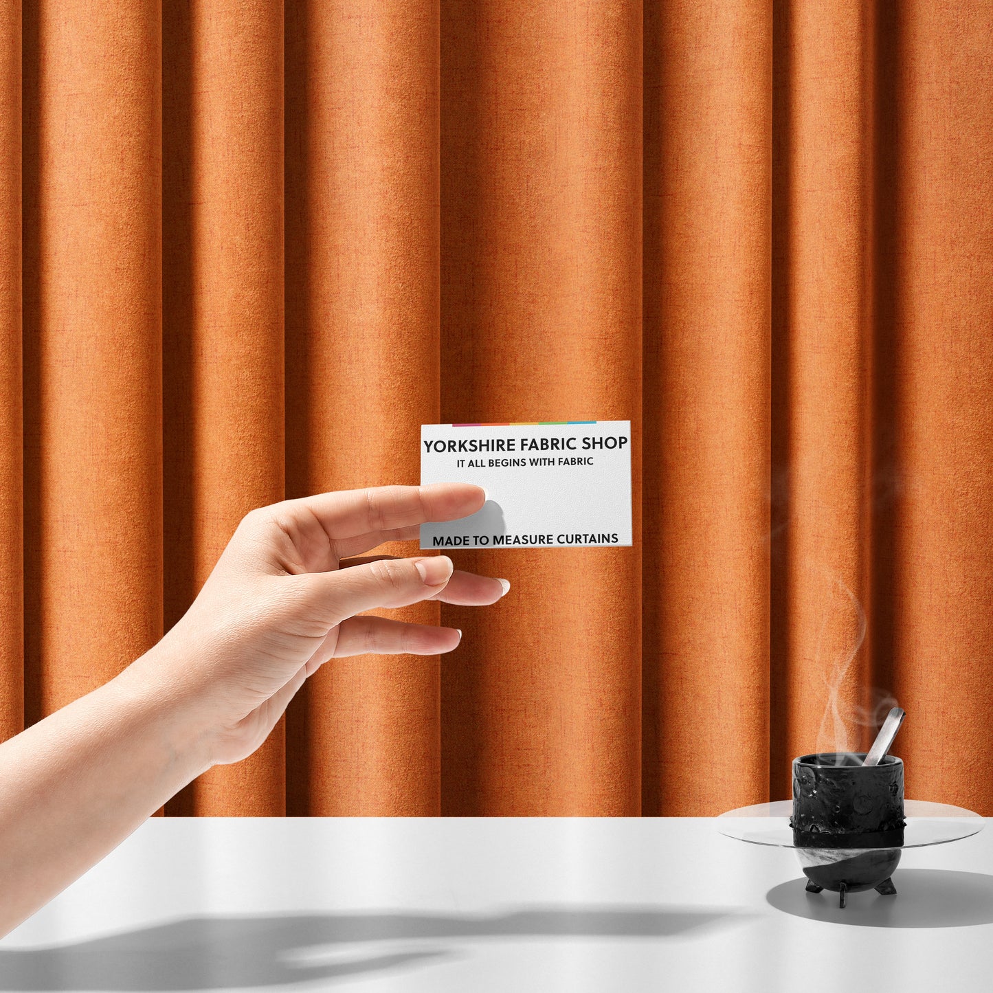 Expertly crafted with soft chenille fabric in a vibrant orange colour, our Ibiza furnishing upholstery is perfect for creating custom-made curtains. Enjoy the luxurious and elegant touch it brings to any room, while also providing durability and easy maintenance. Elevate your home decor with our made-to-measure curtains.