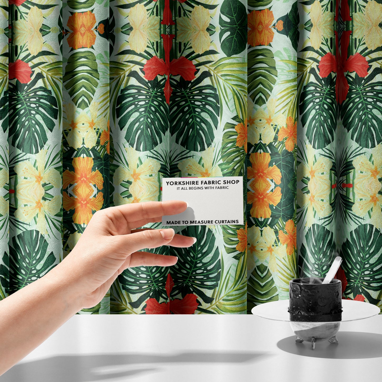 Create a luxurious and elegant atmosphere in your home with our Jardin Jungle upholstered fabric. Featuring a stunning all-over floral pattern, this soft velour fabric is perfect for custom-made curtains that will add a touch of sophistication to any room. Made to measure for a perfect fit, these curtains will elevate your space with its beautiful design and high-quality material.