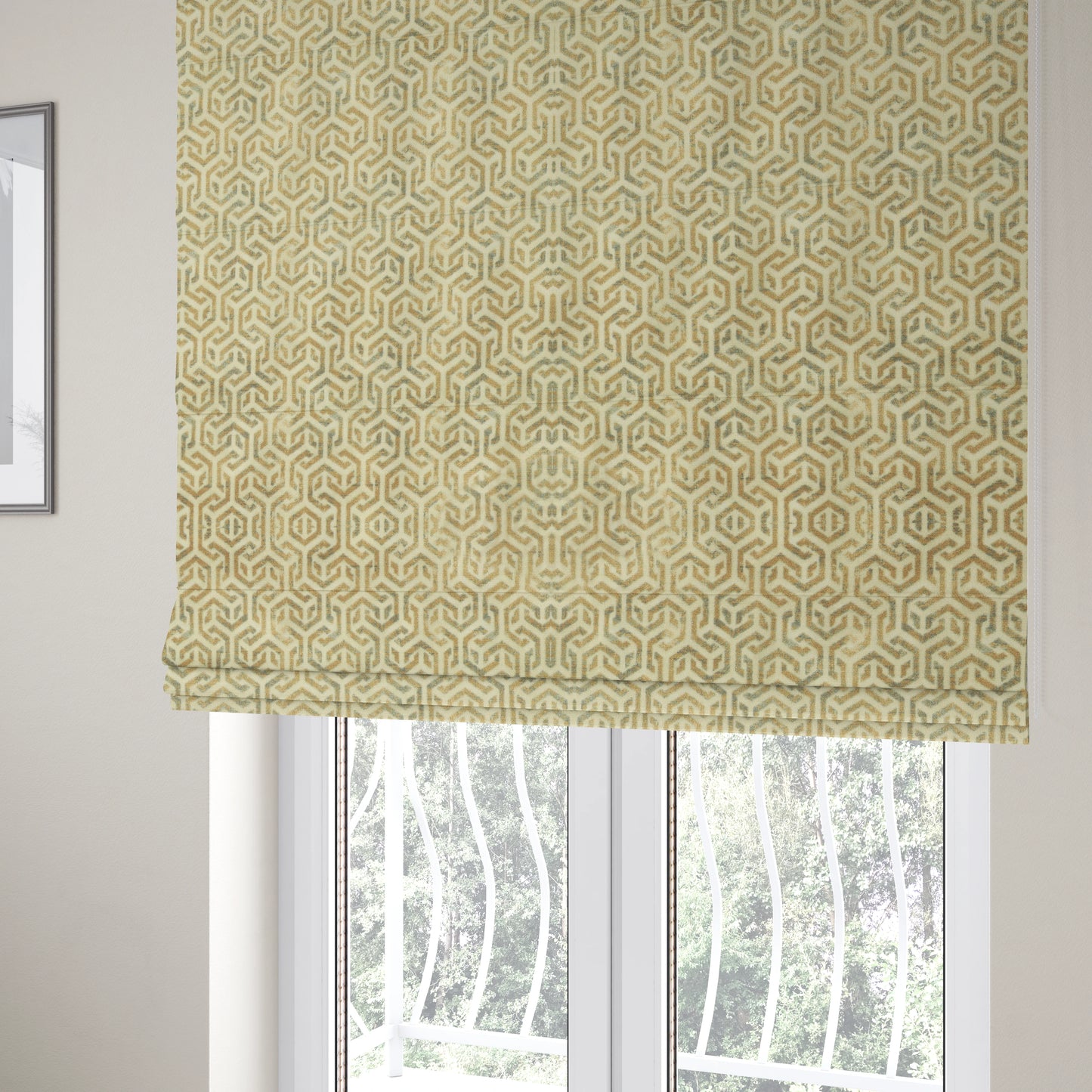 Expertly crafted with a geometric Greek key pattern, the Java printed velvet fabric adds a touch of sophistication to any space. The neutral beige colour allows for versatile use, making it suitable for use in Roman blinds, upholstery, and more. Elevate your decor and enjoy the luxuriously soft feel of this high-quality fabric.