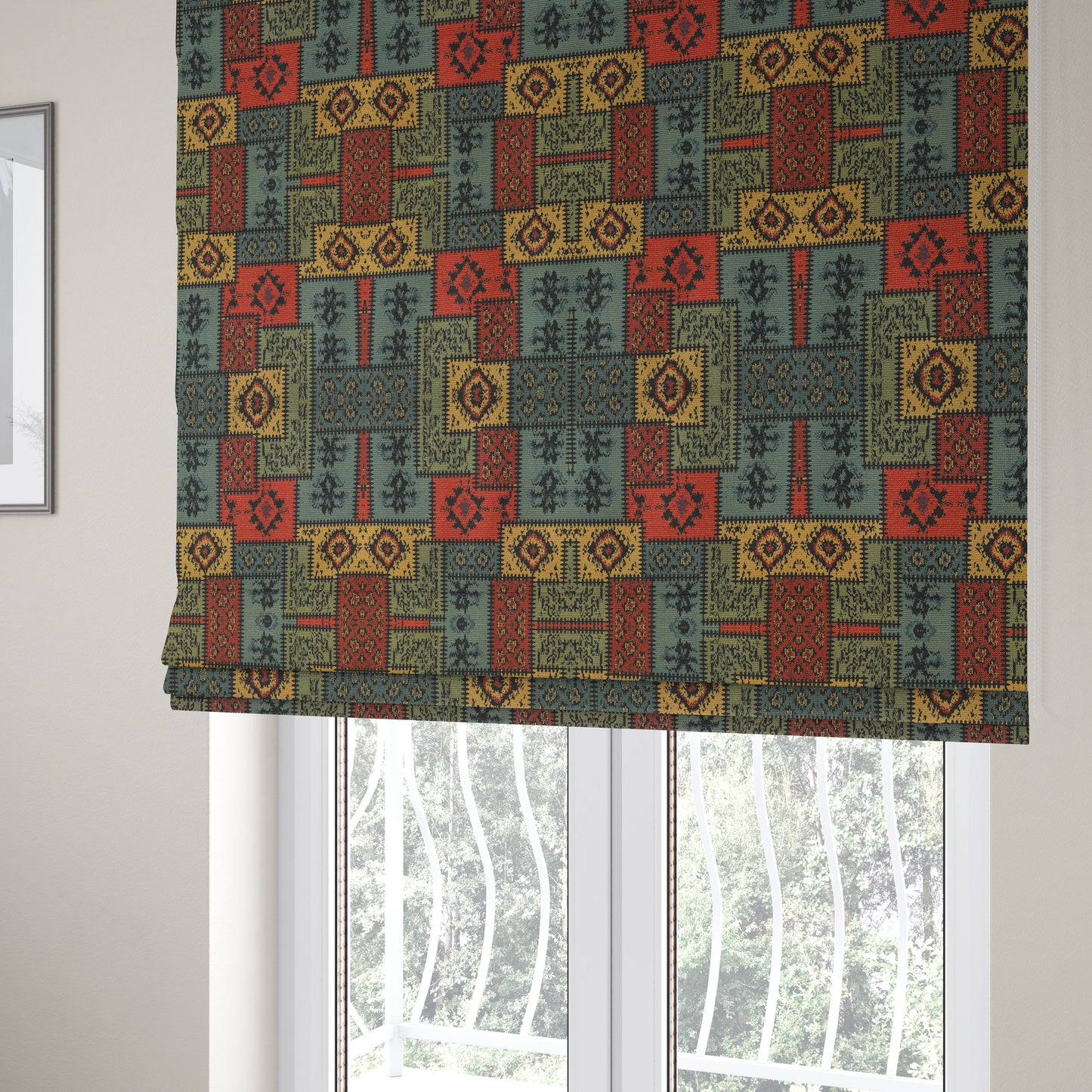 Expertly curated from the Jayapura collection, this kilim patchwork heavyweight chenille fabric is perfect for adding a touch of elegance to your home decor. With striking black and multi-colour patterns, this fabric is versatile for creating beautiful Roman blinds. Elevate your space with this high-quality upholstery fabric.