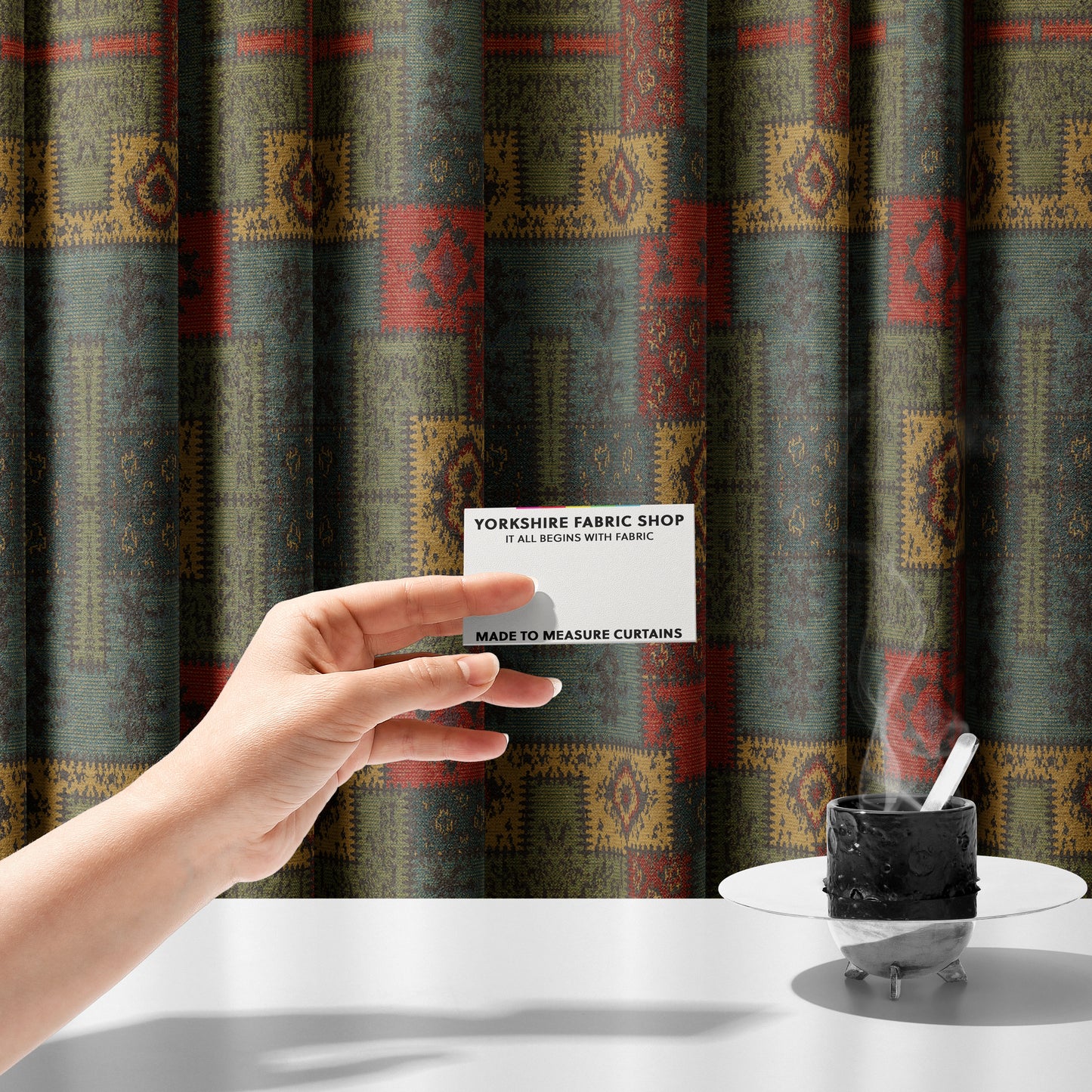 Discover the unique beauty and durability of our Jayapura collection of kilim patchwork heavyweight chenille grey multi colour upholstery fabric. With its intricate design and high-quality material, this fabric offers both style and functionality. Perfect for making custom curtains that will elevate any space.