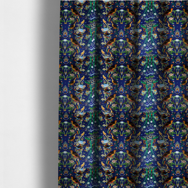 Transform your windows with this stunning upholstery fabric featuring jewel-toned exotic birds nestled amongst lush tropical florals. The rich, saturated colours—deep emeralds, sapphires, and amethysts—create a sophisticated yet vibrant aesthetic that brings the beauty of nature indoors. Perfect for made-to-measure curtains, this premium fabric combines visual drama with versatility, complementing both contemporary and traditional interiors. The intricate botanical design adds depth and character to any room, whilst the quality construction ensures lasting durability and colour retention. Ideal for those seeking a statement piece that elevates their home décor with timeless elegance and exotic flair.