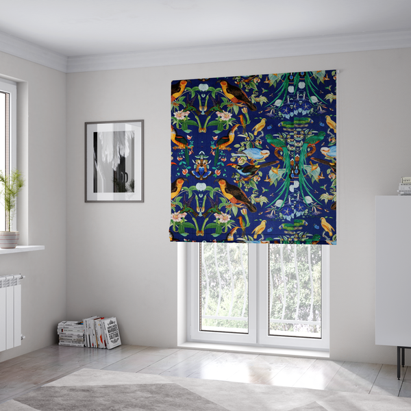 Transform your windows with this stunning upholstery fabric featuring jewel-toned exotic birds nestled amongst lush tropical florals. The rich, saturated colours—deep emeralds, sapphires, and amethysts—create a sophisticated focal point in any room. Perfect for Roman blinds, this durable fabric combines visual drama with practical functionality. The intricate botanical design brings an air of luxury and wanderlust to your interior, whilst the quality weave ensures long-lasting beauty and reliable performance. Ideal for those seeking to make a bold, elegant statement.