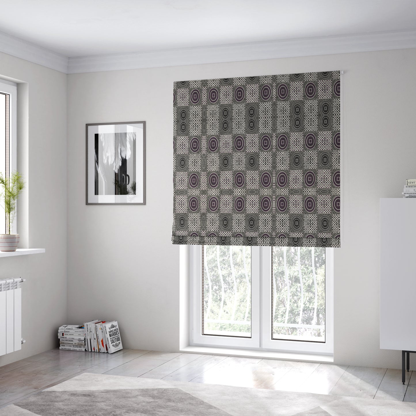 Add a touch of modern elegance to your home with our Juneau glitter fabric collection. Featuring a stunning geometric pattern in purple and silver, these Roman blinds are the perfect addition to any room. The durable upholstery fabric adds both style and functionality to your furnishings.