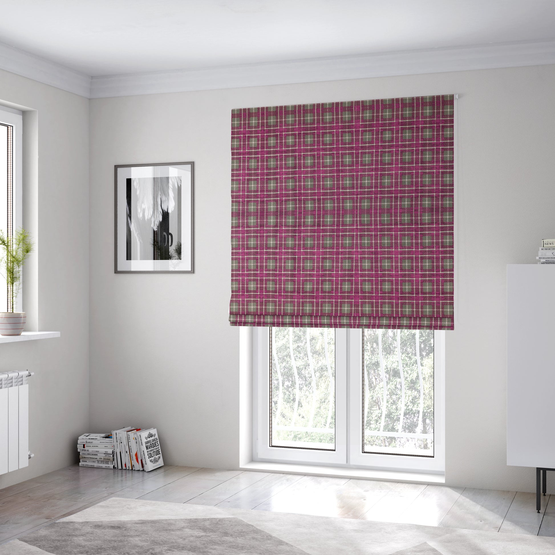 Explore the luxurious world of Ketu with our woven chenille checked tartan pink furnishing fabrics. Adorn your home with the perfect blend of comfort and style. Our Roman blinds add a touch of elegance to any room. Experience the beauty and functionality of fine-quality materials.