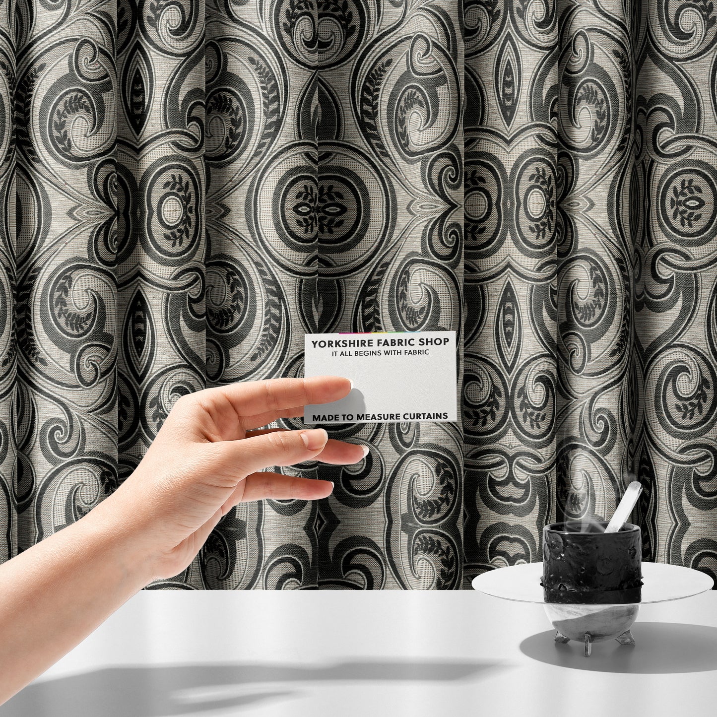 Elevate your home decor with the Ketu collection of woven chenille floral black grey colour furnishing fabrics. Crafted with precision and style, these made-to-measure curtains add a touch of elegance to any room. The woven chenille fabric offers both durability and a luxurious feel, while the floral pattern adds a timeless charm.