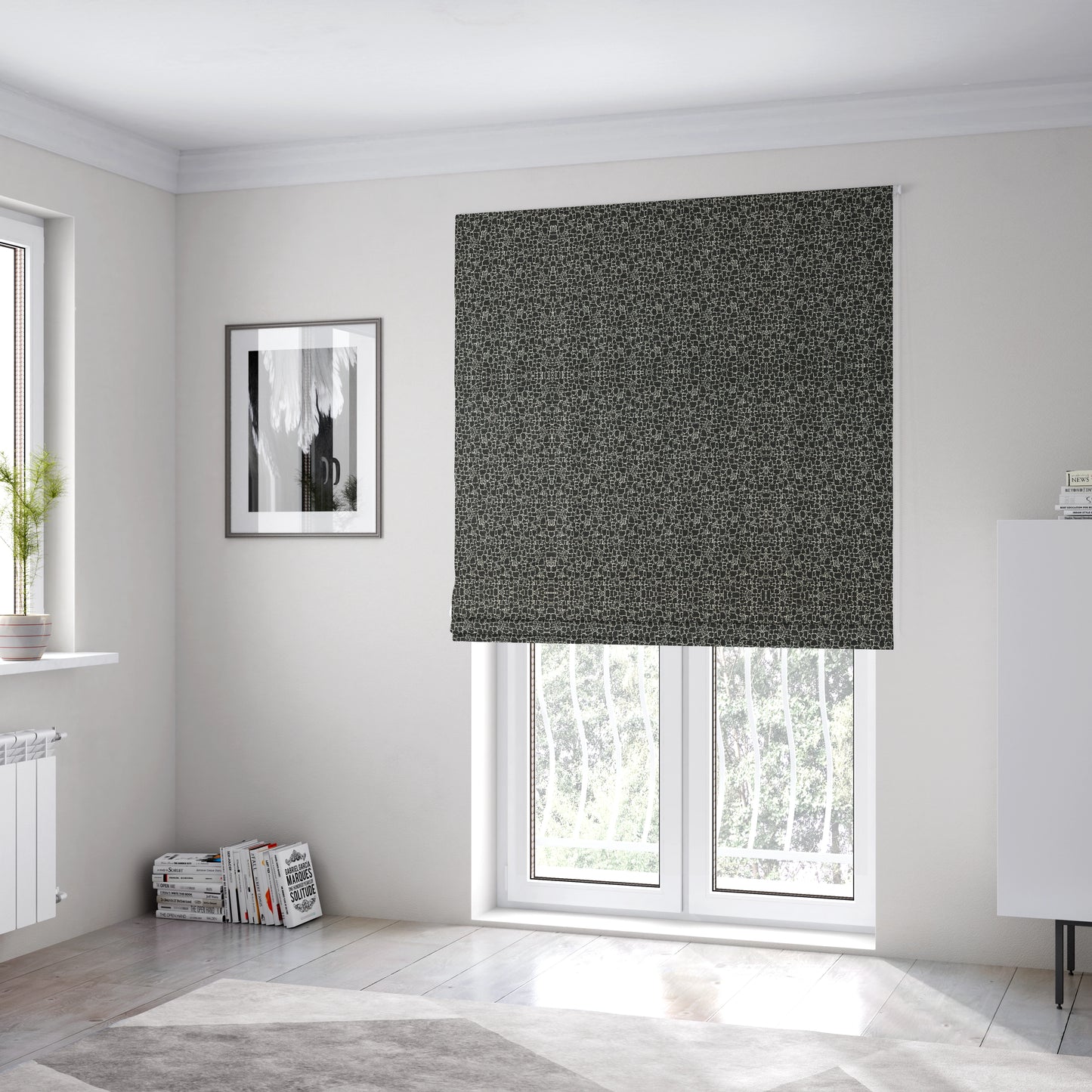 Introducing the Ketu collection of woven chenille furnishing fabrics in a sleek black and grey colourway. Featuring a unique pebble stone effect, these Roman blinds add a touch of elegance to any room. Enjoy the best of both form and function with this stylish and versatile collection.
