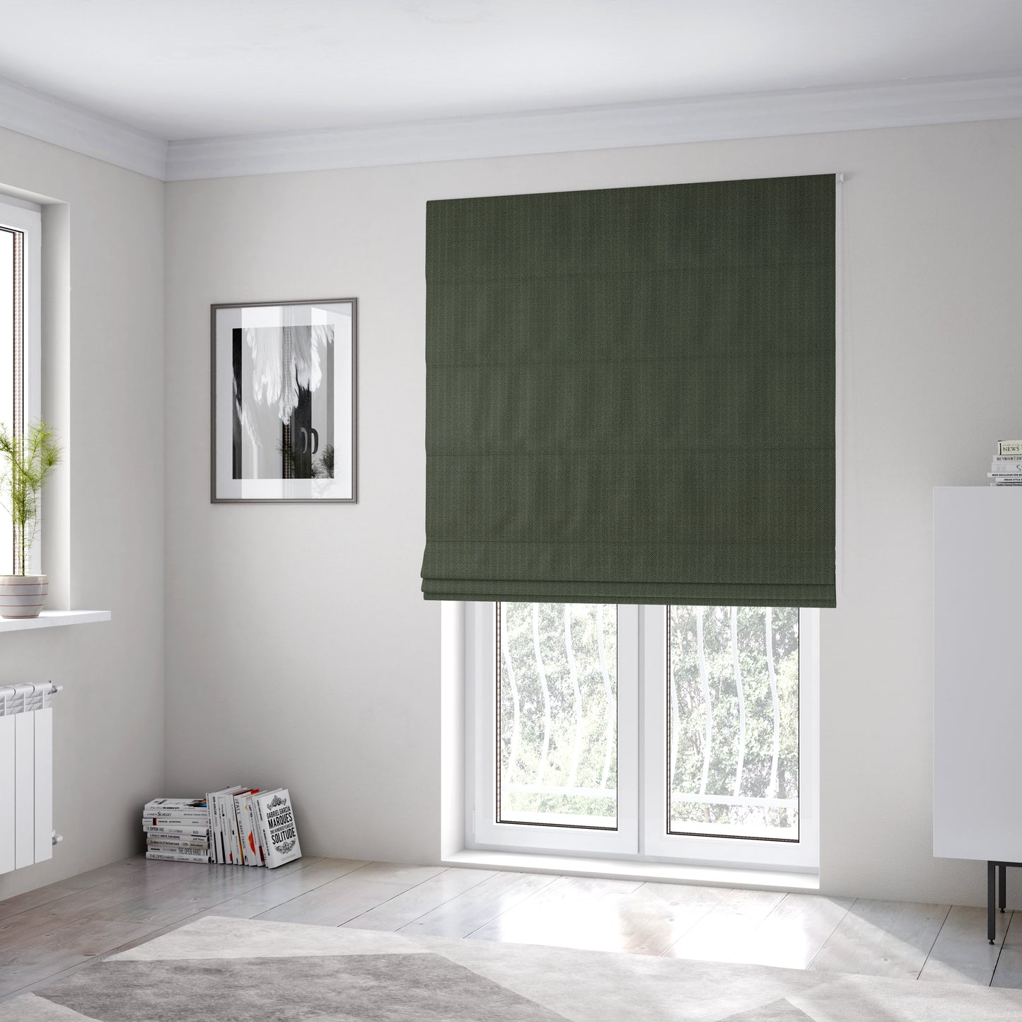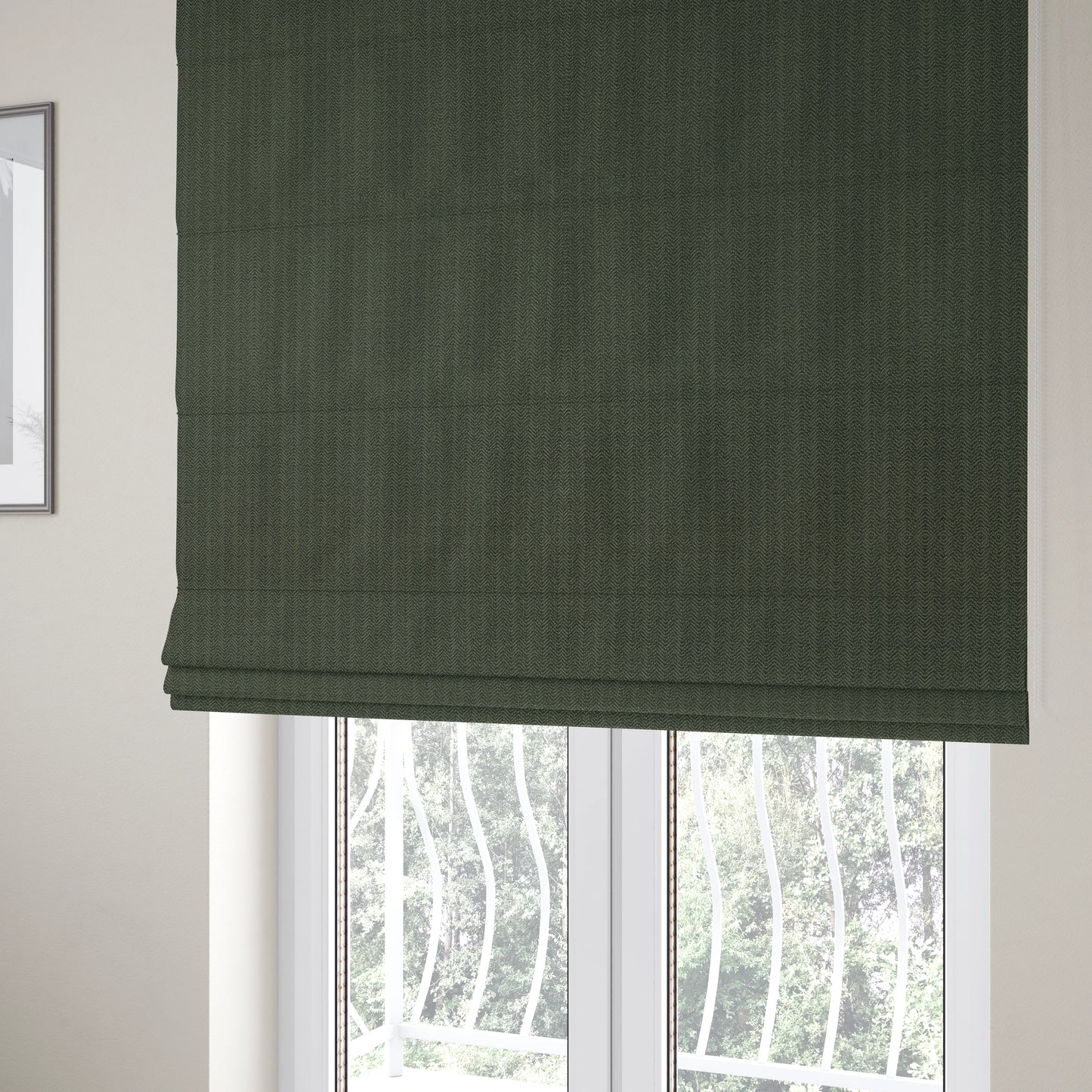 Transform your home with the stylish Kirkwall herringbone furnishing fabric in a sleek black grey colour. These Roman blinds add a touch of sophistication and class to any room, making them the perfect choice for your decor. Elevate your living space with these timeless and elegant window treatments.