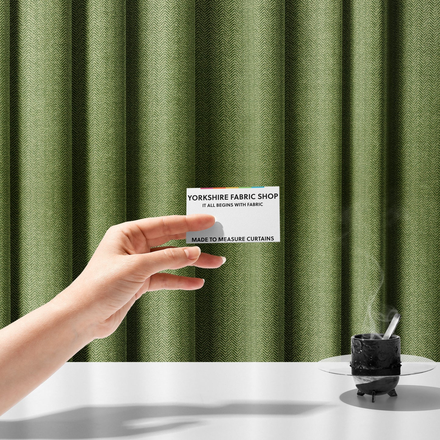 Elevate your home decor with our made-to-measure Kirkwall herringbone furnishing fabric in a sophisticated green colour. Enjoy the timeless elegance of herringbone pattern combined with the convenience of custom-sized curtains. Transform your space into a cozy, British-inspired haven with this luxurious furnishing fabric.