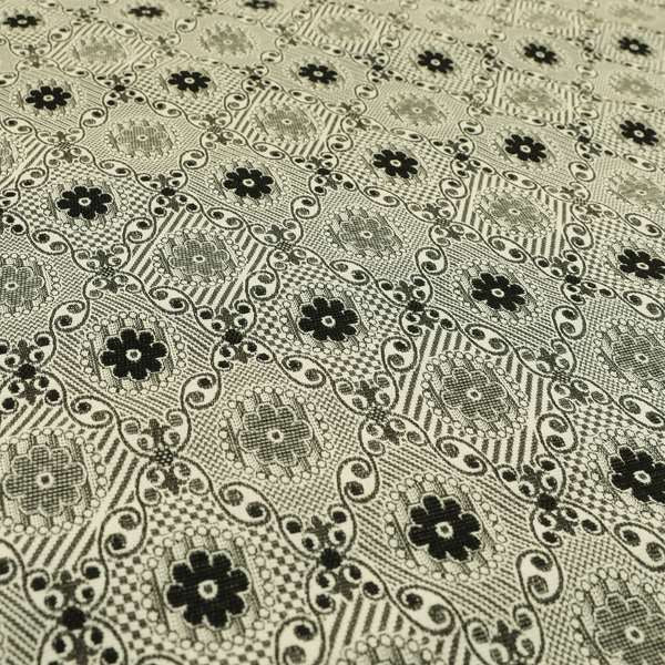 Experience the elegant beauty of our Kodiak textured glitter upholstery fabric. Featuring a small floral pattern in black, grey, and silver, this fabric adds a touch of sophistication to any space. The textured glitter design adds a subtle shimmer, perfect for Roman blinds or any furnishing project.