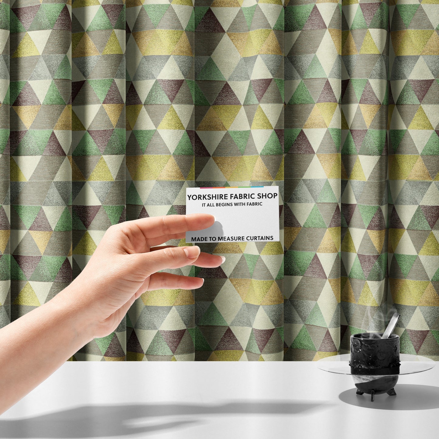 Experience luxury with Le Triangle collection's geometric diamond pattern chenille upholstery fabric. Its soft texture and vibrant green colour will elevate any room, while the made-to-measure option ensures custom curtains that fit perfectly and add a touch of elegance. Make a statement with this exquisite fabric.
