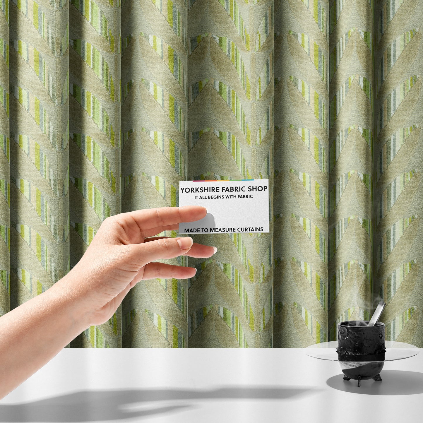 Upgrade your home decor with our fabric. Made to measure curtains provide a perfect fit while its green and brown hues add a touch of sophistication to any room. With its velvet texture, you'll experience ultimate comfort and luxury.