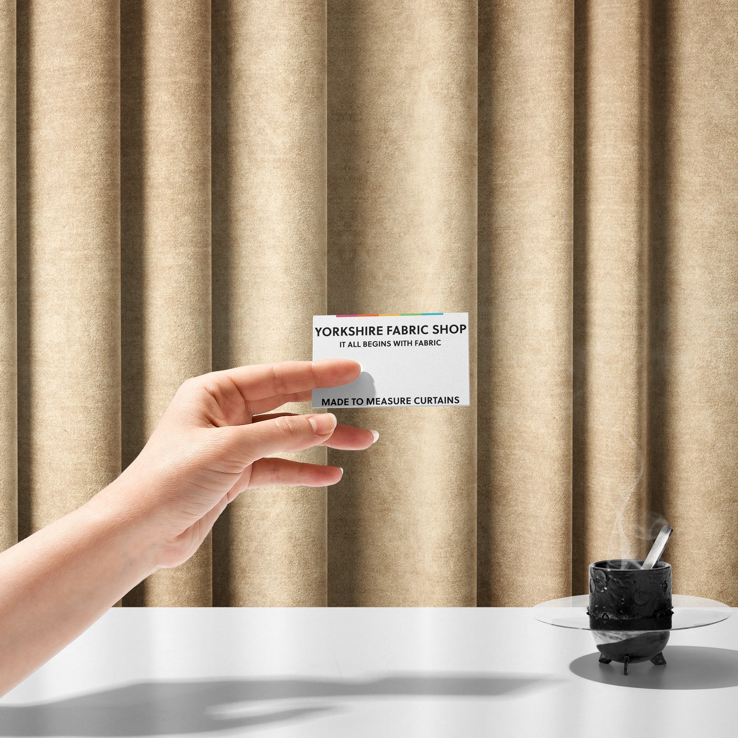 Upgrade your home decor with our Liberty textured plain shimmer velvet beige upholstery fabric. The shimmering velvet adds a touch of elegance to any room. Custom-made for a perfect fit, these curtains provide both style and functionality to your living space.