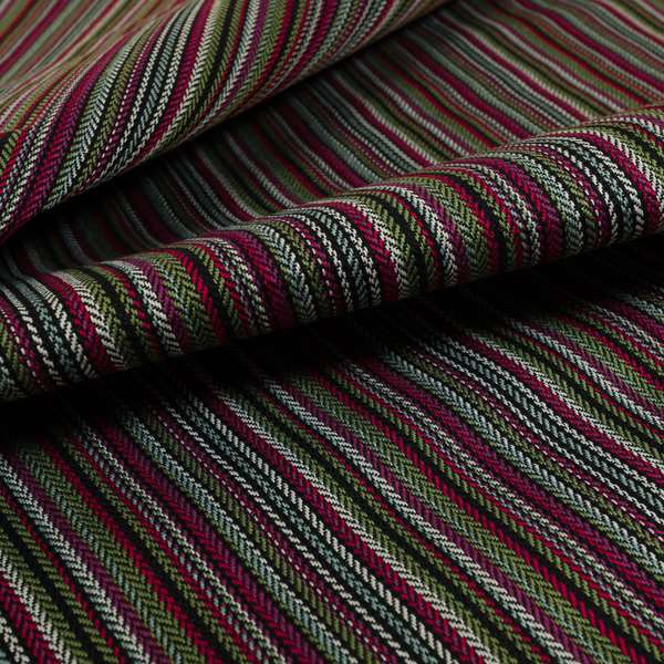 Add a touch of sophisticated style to your home with the Luther striped upholstery fabric. This durable chenille material is perfect for creating Roman Blinds that will elevate any room. Available in a timeless black and green striped pattern, it is both eye-catching and practical.
