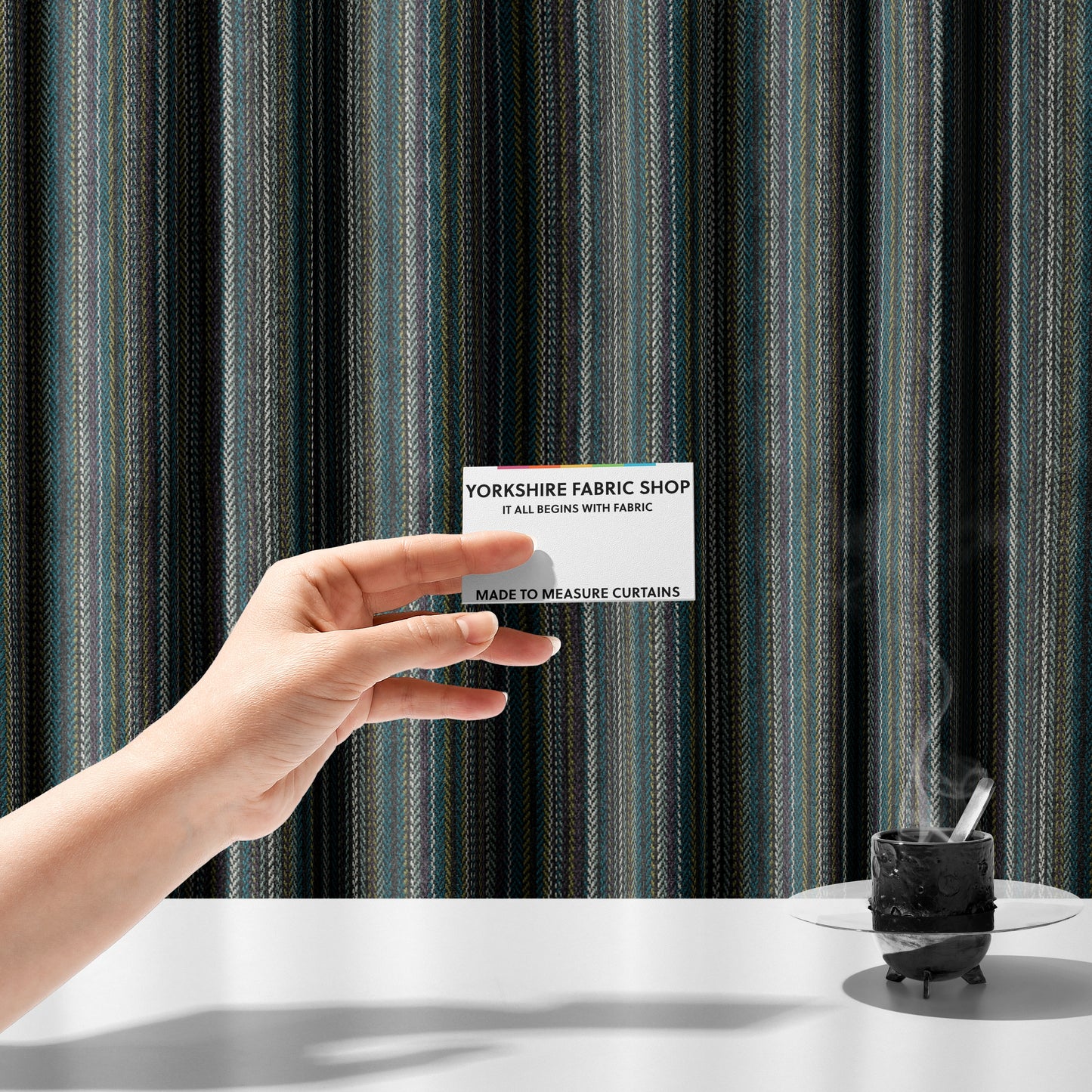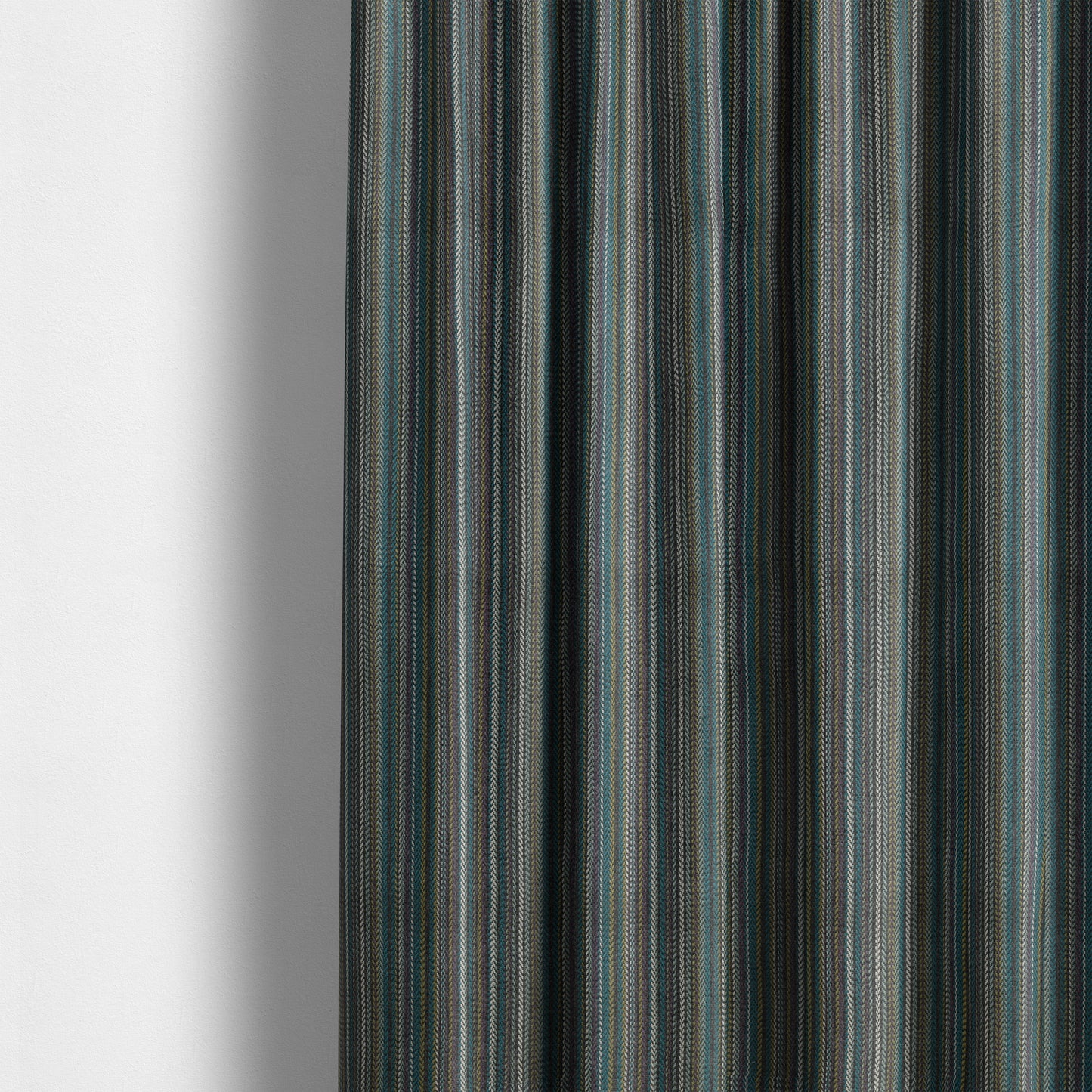 Luther Striped Pattern Grey Blue Coloured Durable Chenille Material Upholstery Fabric - Made To Measure Curtains