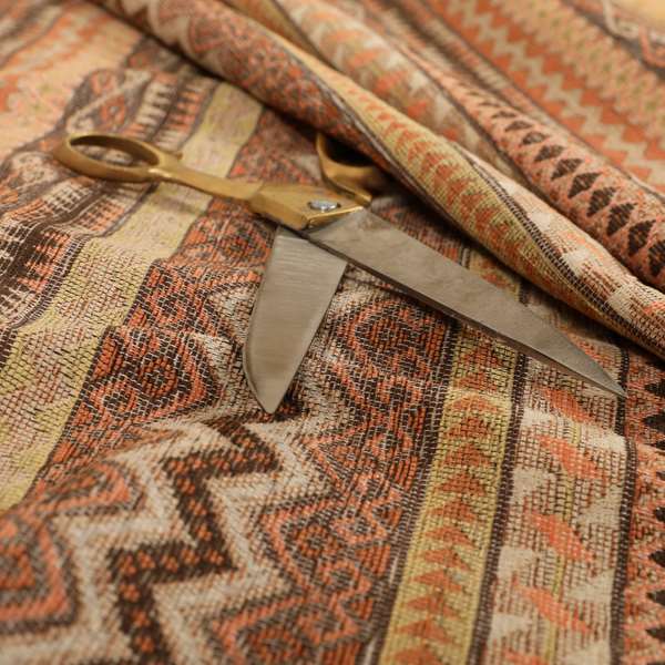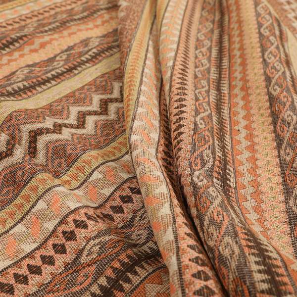 This Maasai-inspired fabric features a small motif striped pattern in a warm brown and orange colour. Designed for Roman blinds, it adds a touch of African-inspired design to your home decor. Made with high-quality materials, this fabric is both stylish and durable, making it the perfect addition to any room.