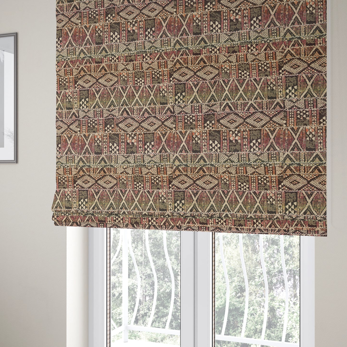 Expertly crafted Madagascar traditional pattern geometric multicolour interior fabrics bring a touch of culture to your home. Elevate your space with these elegant Roman blinds, featuring a unique and eye-catching design. Enhance your interior decor with these high-quality and stylish blinds.