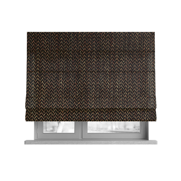 This Majesty herringbone weave chenille fabric is perfect for upholstery and furnishing projects. The black and brown colour combination adds a touch of sophistication to any space. Its durable and high-quality construction makes it ideal for Roman blinds, providing both style and functionality.