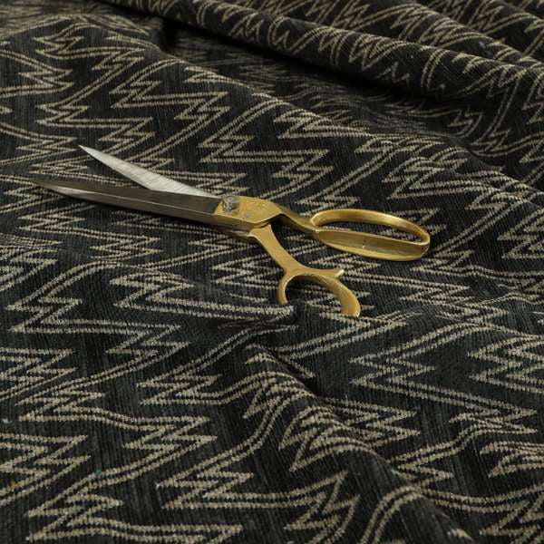 Introducing our Marlow woven designer chevron striped Roman blinds, featuring a sophisticated black and brown pattern. Made with high-quality interior fabric, these blinds add both style and function to any room. Elevate your space with this elegant design.