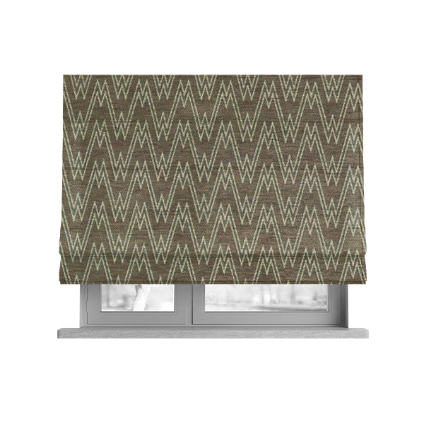 Effortlessly elevate any room with the Marlow woven designer chevron striped pattern in brown cream interior fabric Roman blinds. This sophisticated and stylish design adds a touch of elegance while providing privacy and light control. Made with high-quality materials, these blinds are built to last and will enhance the aesthetic of your home.