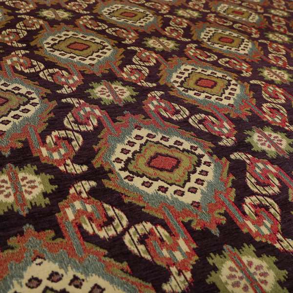 Experience the beauty of Mazahua tribal culture with our Roman blinds in a rich purple chenille fabric. The intricate damask pattern adds a touch of elegance to any room. Perfect for adding a pop of color and texture while controlling sunlight.