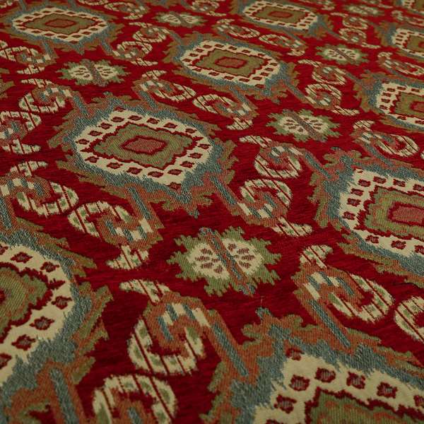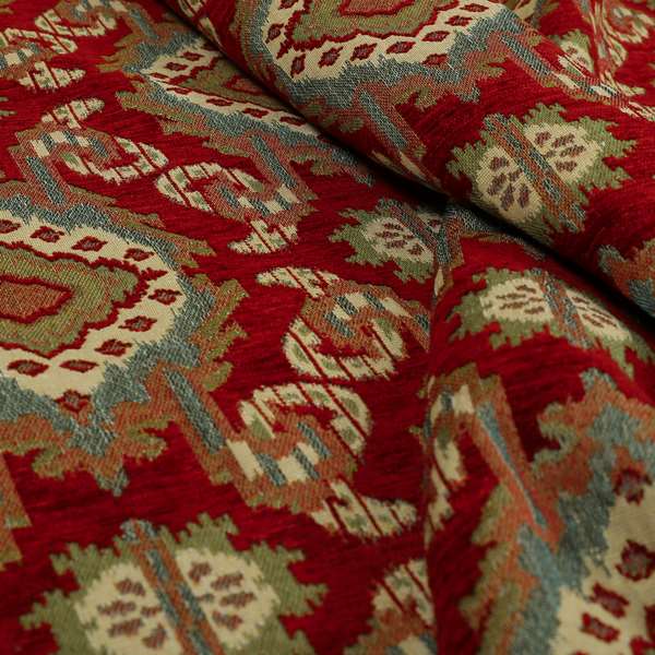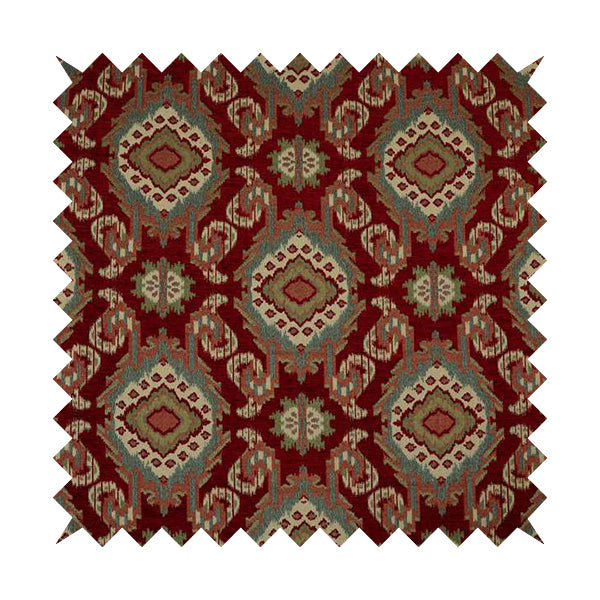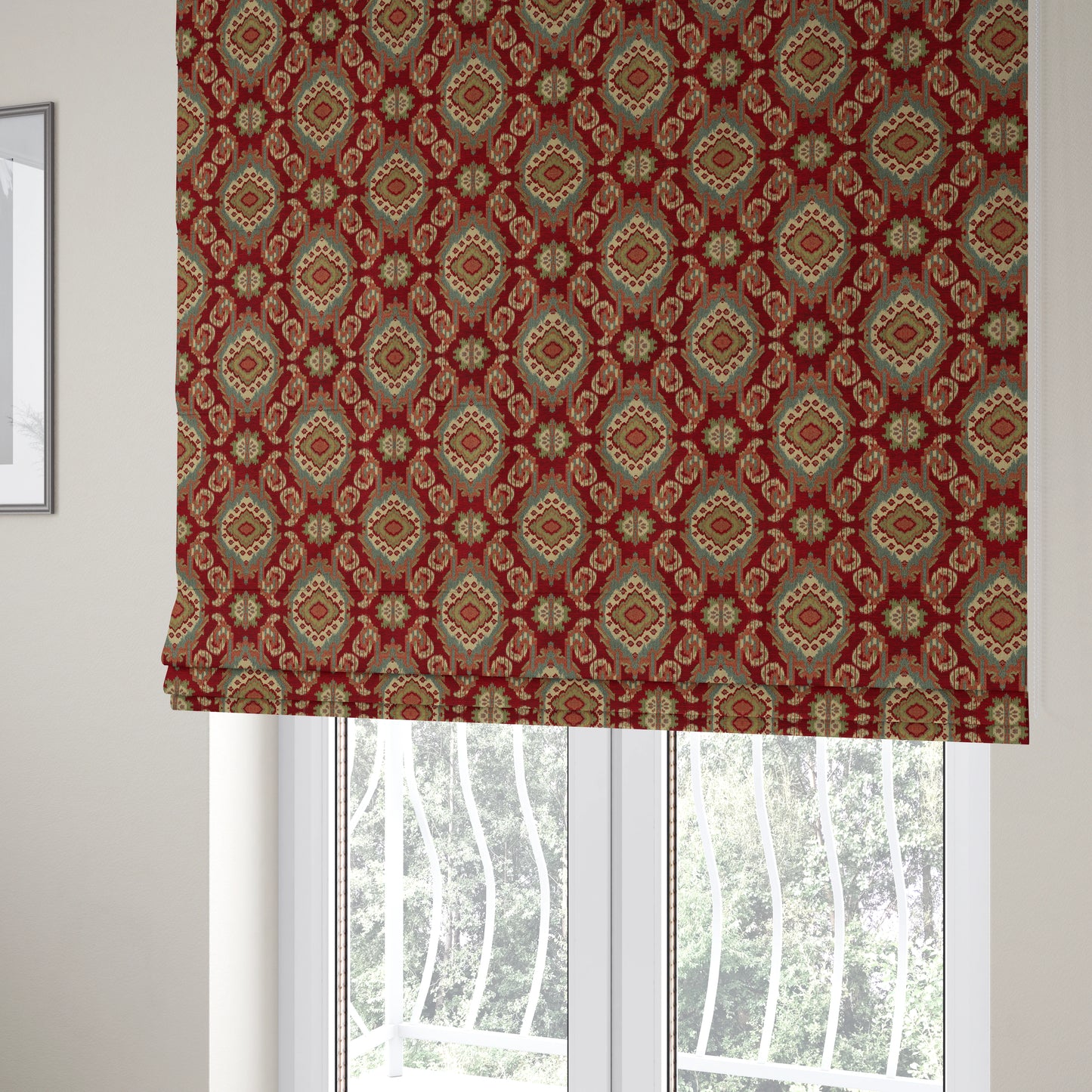 Experience timeless elegance with our Mazahua tribal theme damask intricate pattern red coloured chenille fabric Roman blinds. Featuring a rich red colour and traditional tribal design, these blinds add a touch of culture to any room. The intricate chenille fabric creates a luxurious feel while providing privacy and light control. Elevate your space with these versatile and stylish blinds.